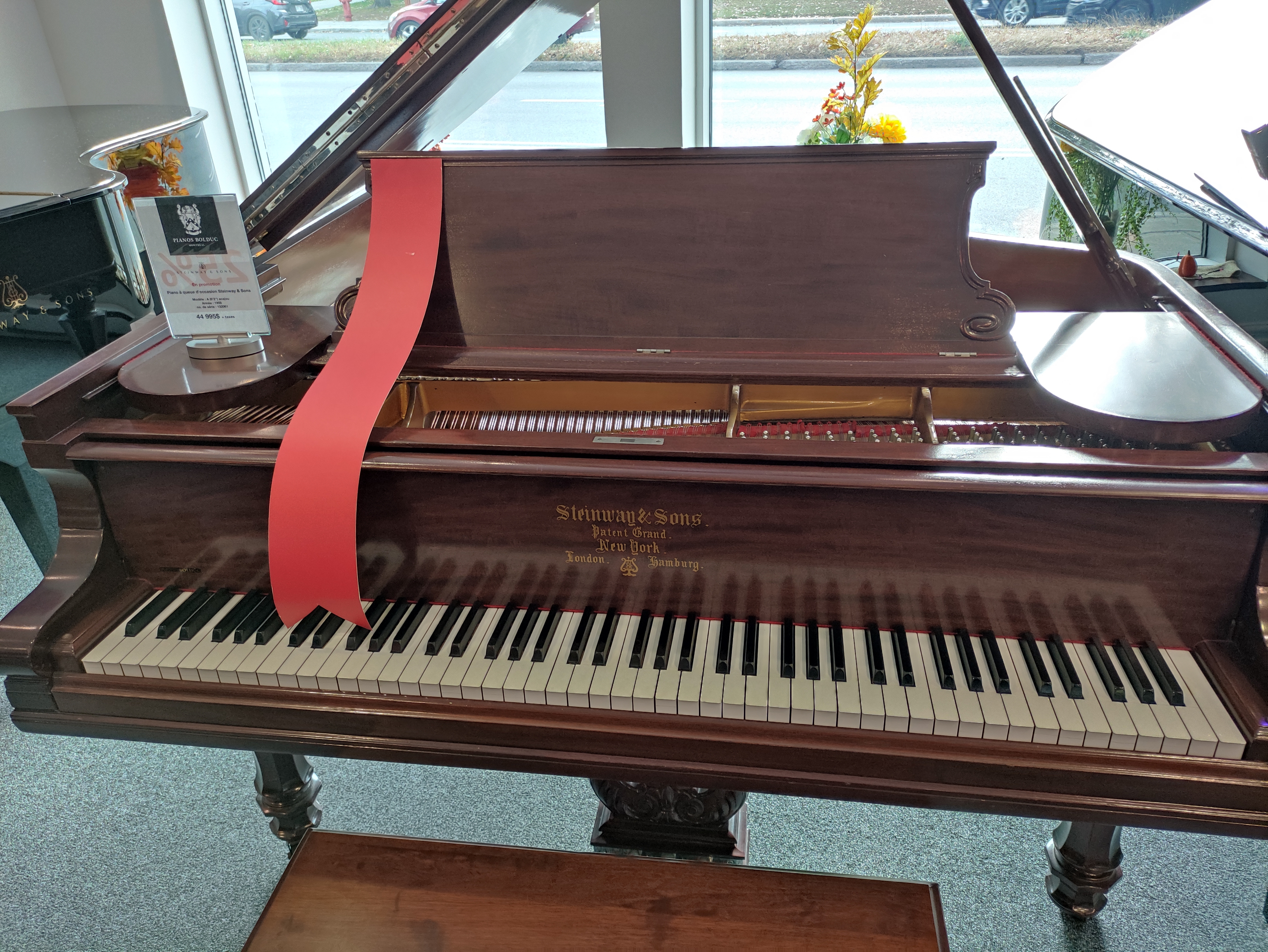 Et évidemment, on en a profité -entre autre- pour aller voir un magasin de pianos ! Notre choix s'est porté sur un superbe magasin qui présente tous les modèles Steinway à queue: du S au D. J'en ai profité pour tester un A de New York (120 ans environ), à 40 OOO $ canadiens, et une réduction de 25 %, ce qui en fait un piano à 20 000 euros. Très facile à jouer et doté d'un beau son. Il y avait aussi un Mason and Hamlin magnifique, mais très sonore (trop, pour moi).