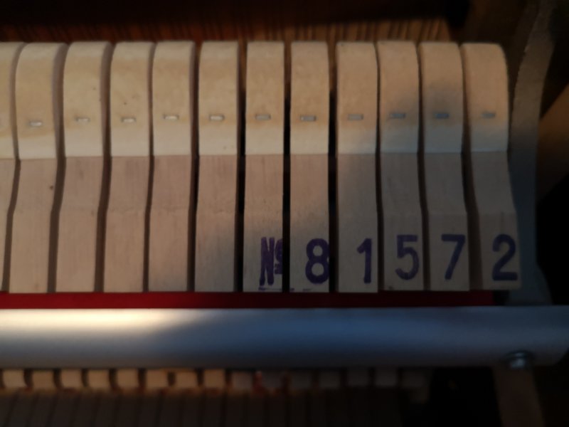 J'ai suis également allé voir un Hellas à côté de chez moi, assez peu d'informations de la part du vendeur, il l'a acheté il y a 5 ans à un facteur de piano, pour son fils qui a arrêté. Dernier accord il y a deux ans, sans facture. Il semble en bon état, les marteaux sont un peu marqués et je n'ai pas remarqué de traces d'humidité seulement un peu d'oxydation qui paraît superficielle. L'ensemble des touches fonctionne bien, les pédales également. A l'écoute, bien que pas accordé, il sonne pas mal mais j'ai préféré la sonorité du Weinbach. Je l'ai mesuré à 108cm, il a quelques traces sur le meuble mais rien de dramatique.