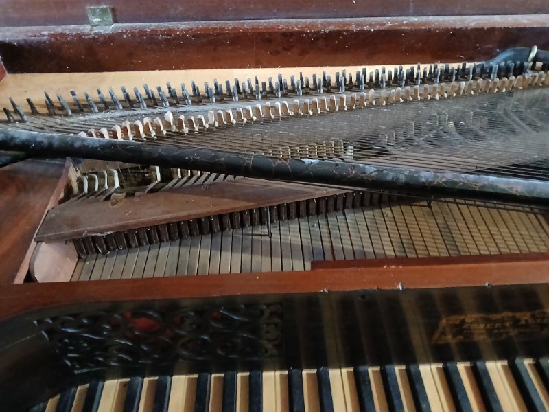 par contre, tout les feutres sont morts. donc pour l'instant, j'attend de savoir comment le démonter sans enlever les cordes car les touches coté aigues sont en dessous de la table d'harmonie.