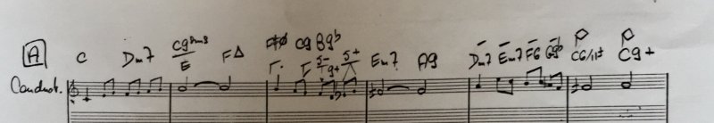 Et cette fois-ci, au lieu de faire l'arrangement chez-nous, je crois me rappeler qu'il fallait l'écrire pendant le cours. Un très bon exercice car aucune aide d'un instrument. Tout penser juste à la table, muni d'un simple crayon de papier et d'une gomme. C'était tellement nouveau pour moi !