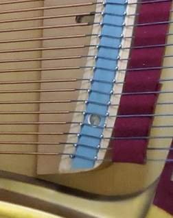 D'ailleurs, sur certains pianos, la bande de feutre calée derrière le contre-sillet entre le cadre et les cordes est très étroite, et sur d'autres, très large, s'étendant jusqu'aux chevilles.