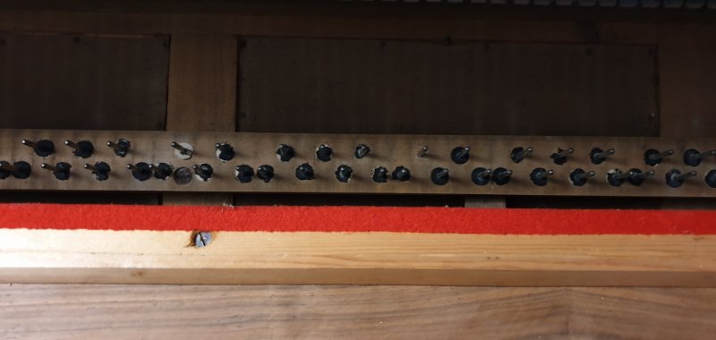Bonjour à tous. Je me permets de vous recontacter. Mon bon vieil A bord et accordé pour l'instant ca tient. Pas sur toutes les notes car il lui manques quelques feutres sur les étouffoirs, je crois que c'est comme cela que ca s'appelle. (Je suis plutot clavier accordeon et pas piano malgré que mon rêve d'enfant était de jouer du piano mais papa jouant de celui ci ma donc orienté vers l'accordeon. 2 cordes qui ont cassé dans les aigus en essayant de les accorder. Rien de mechant. Je vous joins une photo car je ne trouve rien sur le net pour en commander. Je n ai ni la longueur ni largeur en modele car absent lorsqu'on me l'a donner. Pourriez vous me renseigner sur les dimendion de ses etouffoirs et ou en trouver. Merci de vos réponses et de votre amabilité. Musicalement. CATHY