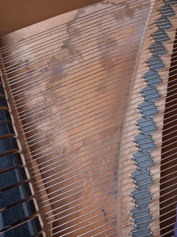 Pour moi dégâts d'humidité rédhibitoires. Dans un contexte global de profusion de pianos ( offre excédentaire par rapport à la demande) on doit selon moi exclure tout piano qui présente des défauts de cet ordre. C'est une affaire de patience et se tenir à quelques principes de base dont celui-ci.