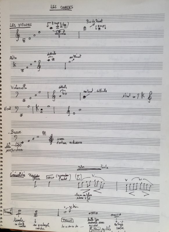 "Messieurs, pour la semaine prochaine, vous arrangerez cela pour 1 contrebasse, 2 violoncelles, 3 altos, 4 violons B et 6 violons A", et sans finalement nous donner d'explications pour ce premier devoir de cordes. Mais mais avec toutes les indications qu'ils nous avaient données précédemment concernant le jeu sur les instruments, on pouvait s'en tirer.